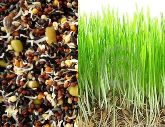 A semente germinada também é uma boa alimentação na época de cria. Tanto na forma inicial da germinação como também quando já estão formando pequenas gramíneas na forração do vasilhame.